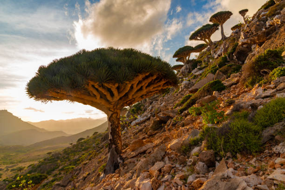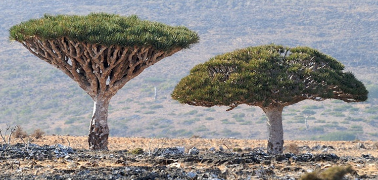 • В естественной среде Dracaena cinnabari, эндемик острова Сокотра, формирует «зонтичную» крону и напоминает гриб. Это растение считается символом Йемена.