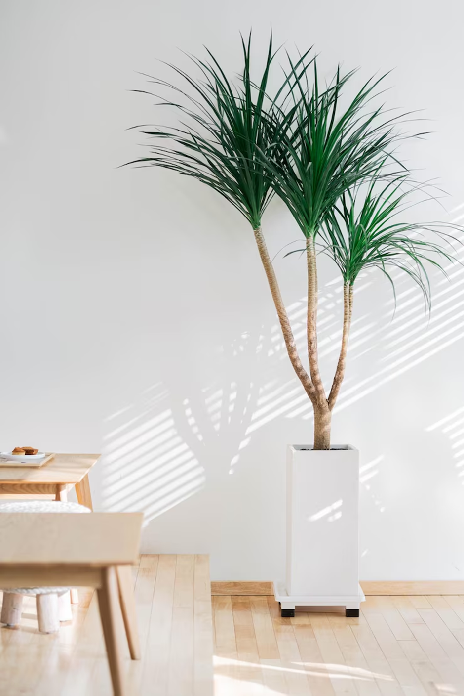 • Грациозный силуэт — многие драцены растут вверх, образуя стройные стволы и воздушные кроны, которые придают интерьеру лёгкость.