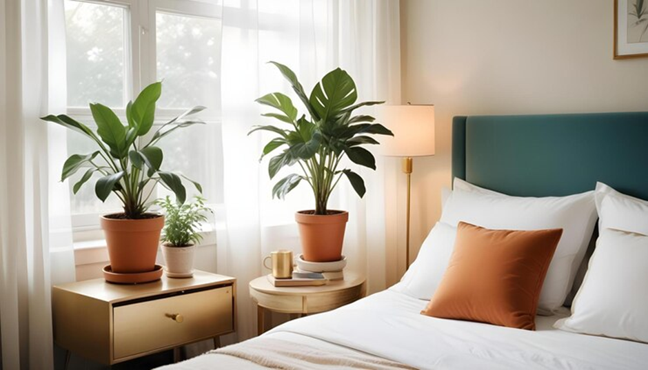 Чтобы растения действительно «работали» на атмосферу, важно правильно их расположить. Избегайте перегруженности, в комнате достаточно 2–3 зелёных акцентов. Лучше всего размещать цветы для сна у окна или на прикроватной тумбе. Также можно повесить кашпо — особенно если у вас мало места.